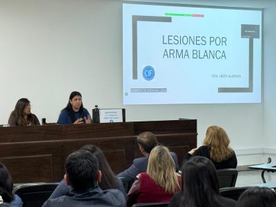 La capacitación estuvo a cargo de Alejandra Nasrala, médica legal y médica clínica, y de Heidy Alarcón, médica legal y ginecóloga, quienes expusieron sobre las tareas que lleva adelante la División de Medicina Legal del CIF, donde se realizan estudios de historias clínicas (lesiones, causas de defunción, lex artis y grado de incapacidad), atención en el Consultorio de Medicina Legal (exámenes físicos y ginecológicos, hisopados) y tareas propias de la Morgue (autopsias, exámenes cadavéricos y de restos óseos).